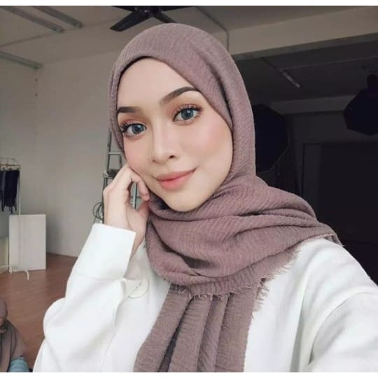 Tutorial pashmina dengan sebutan crinkle ini cukup mudah dan simple untuk dicoba .